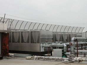 4、對屋頂?shù)闹醒肟照{(diào)系統(tǒng)室外機組的噪聲,采用主要采用大面積吸音隔聲墻的工藝裝置來進行治理屋頂噪聲。